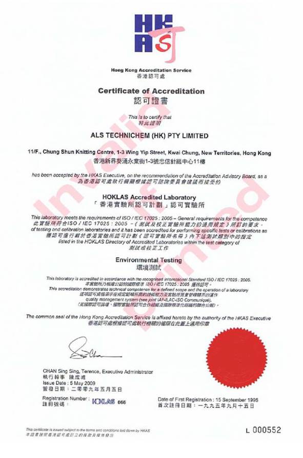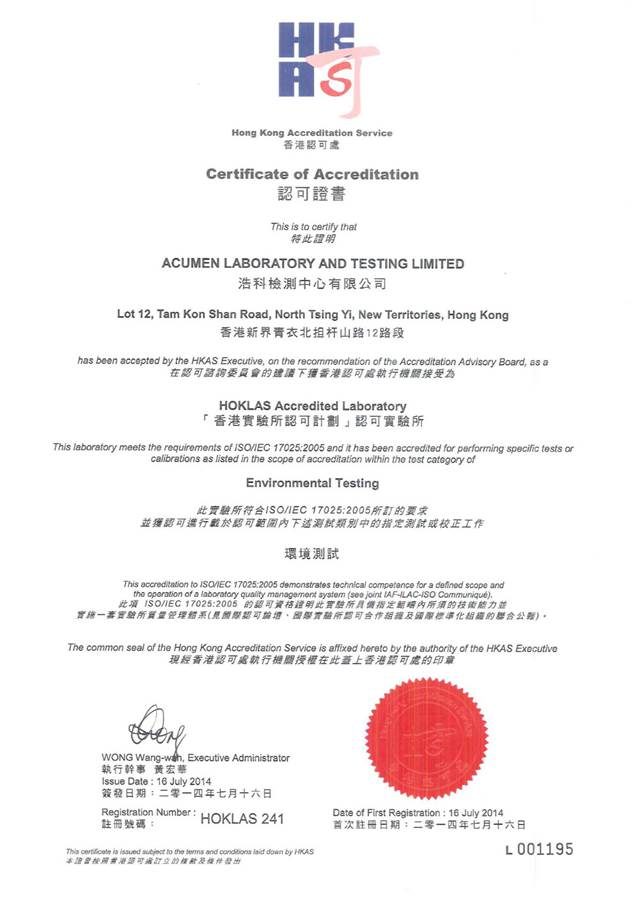 J. The Certification of Laboratory with HOKLAS Accredited Analytical Tests