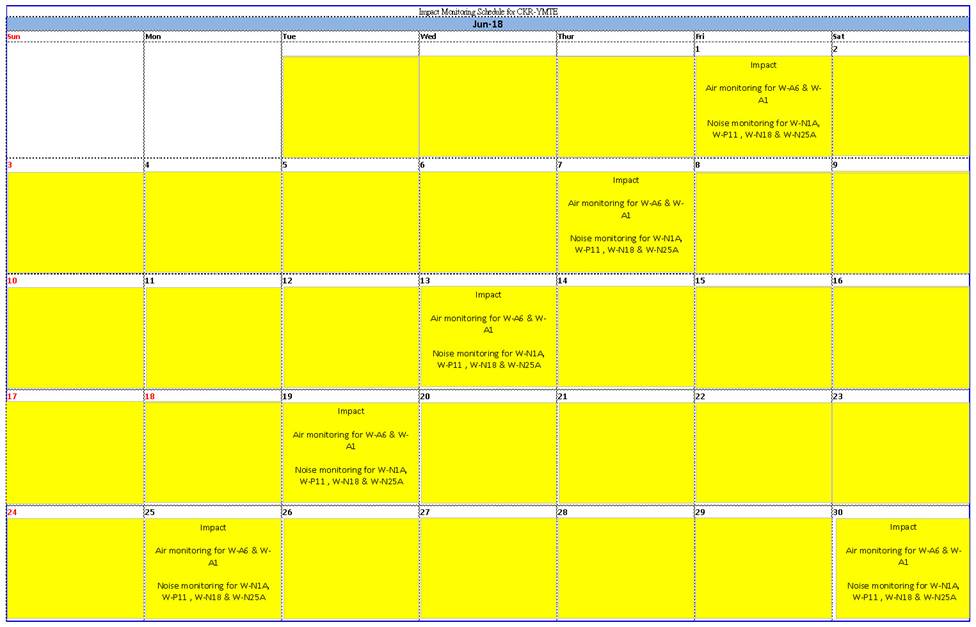A.6 Bi-weekly inspection of the implementation of landscape and visual mitigation measures was conducted on 12 and 26 April 2018. Details of the audit findings and implementation status are presented in Section 6.