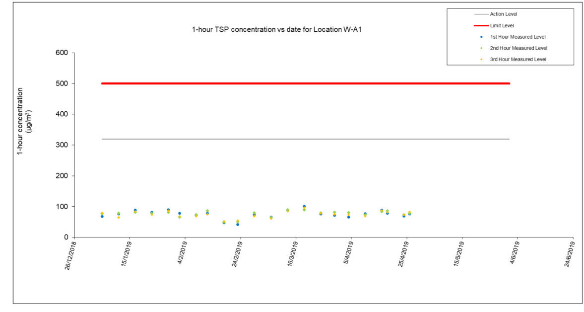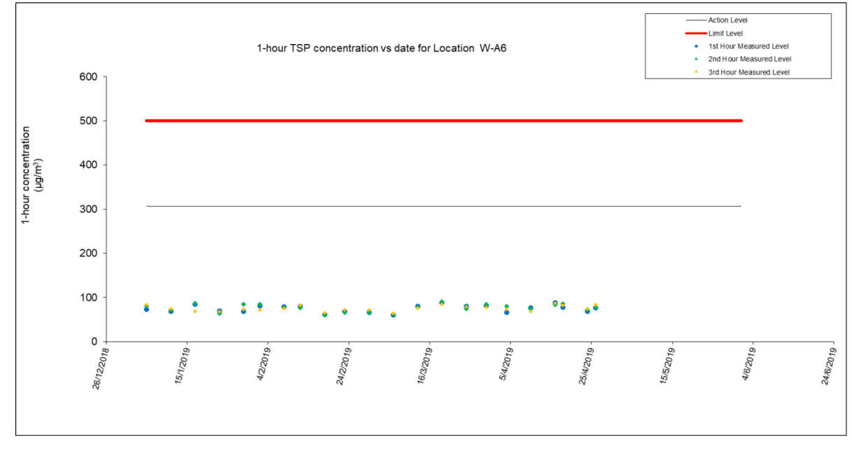 A.10 No exceedance of the Action and Limit Levels of 24-hour TSP and 1-hour TSP monitoring were recorded during the reporting period.