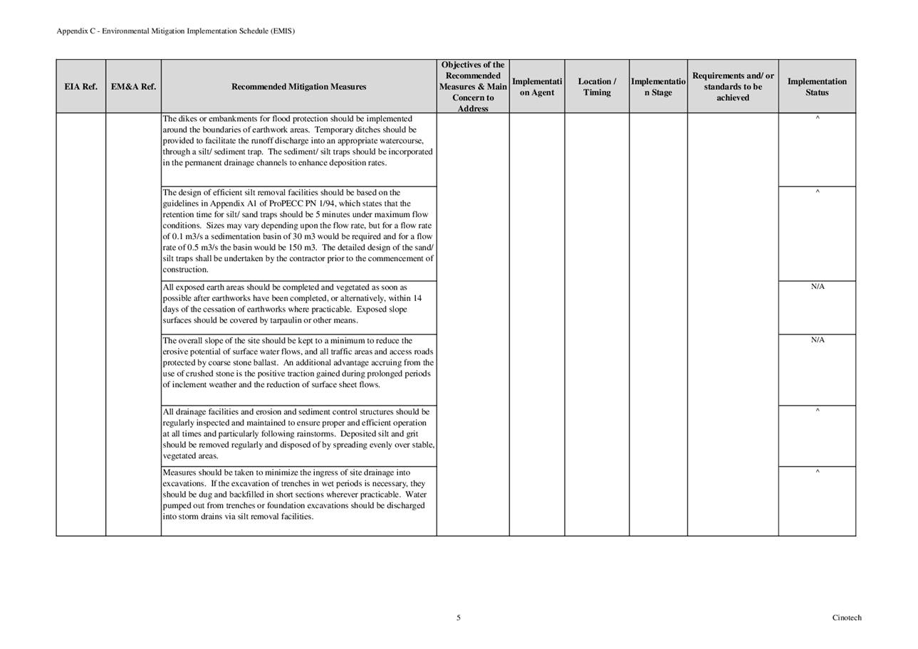 F. Environmental Mitigation Implementation Schedule (EMIS)