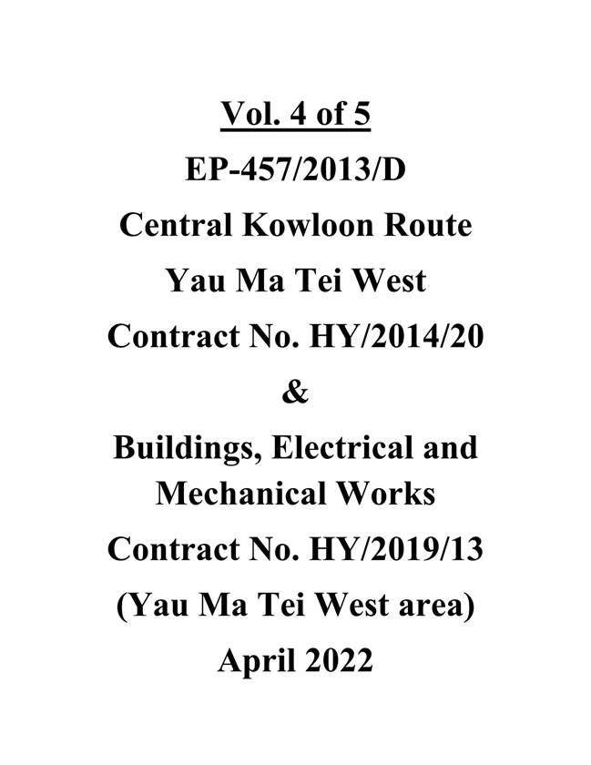 1.2. The Central Kowloon Route – Design and Construction Environmental Impact Assessment Report (Register No.: AEIAR-171/2013) was approved with conditions by the Environmental Protection Department (EPD) on 11 July 2013. An Environmental Permit (EP 457/2013) was issued on 9 August 2013. Variations of EP (VEP) was subsequently applied for and the latest EP (EP-457/2013/D) was issued by EPD on 15 June 2021.