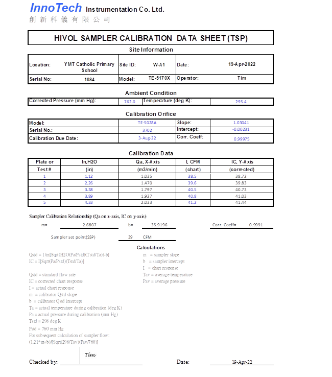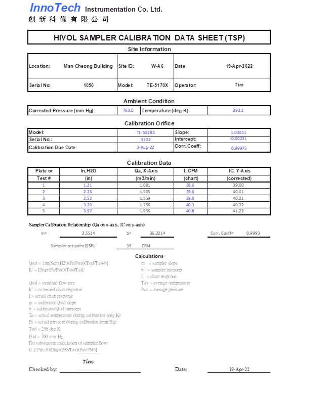H. Calibration Certificate (Air Monitoring)