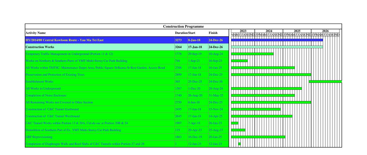 1.3. The construction of the CKR had been divided into different sections. This Contract No. HY/2014/08 – Section of Yau Ma Tei East (YMTE) covers part of the construction activities located at Yau Ma Tei under the EP and FEP which includes: