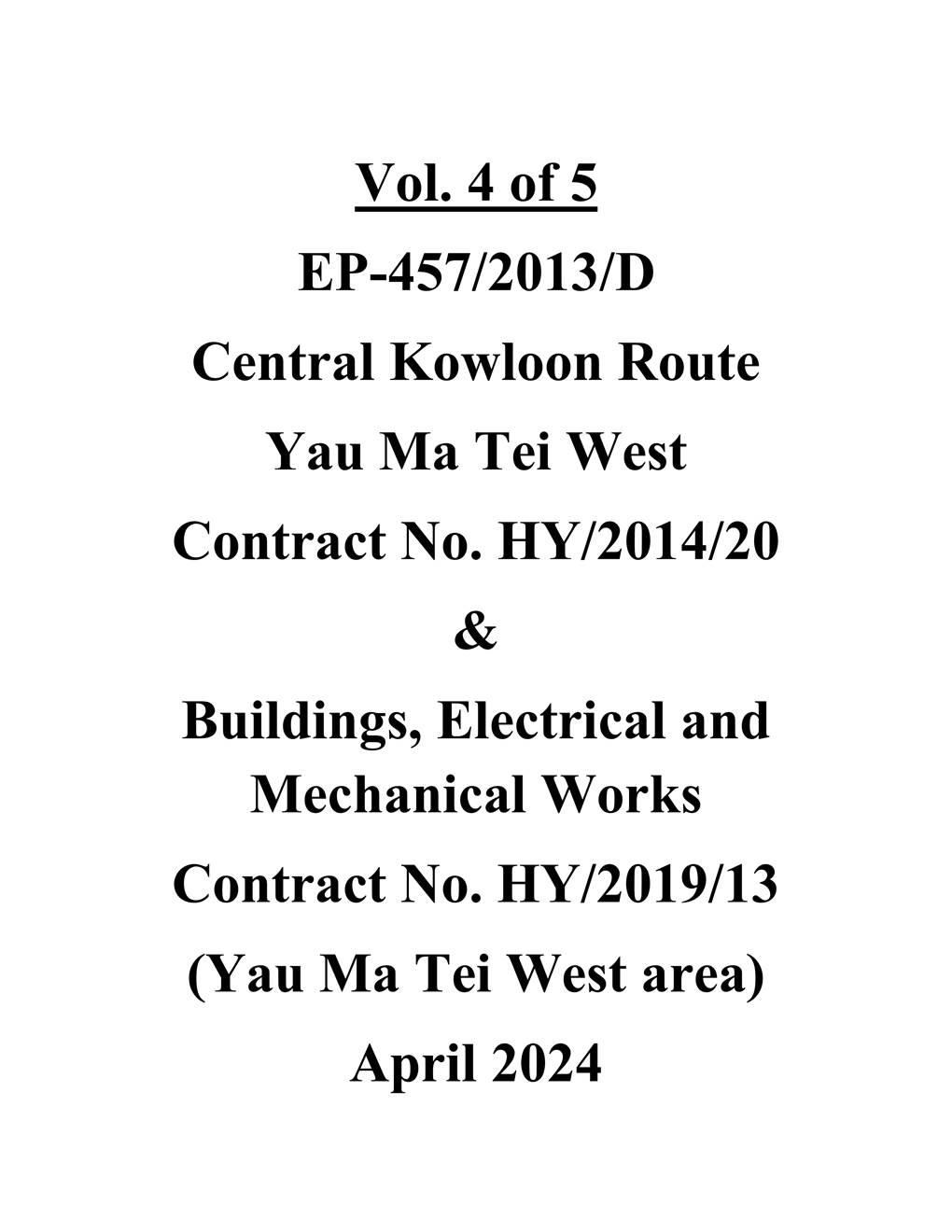A.1 Build King – SK ecoplant Joint Venture (“Contractor”) commenced the construction works of Highway Department (HyD) Central Kowloon Route Contract No. HY/2014/20 – Section of Yau Ma Tei West (“The Project”) on 12 February 2019. This is the 63rd monthly Environmental Monitoring and Audit (EM&A) report presenting the EM&A works carried out during the period from 1 April 2024 to 30 April 2024.