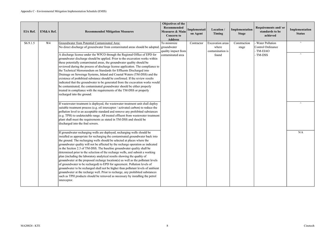 F. Environmental Mitigation Implementation Schedule (EMIS)