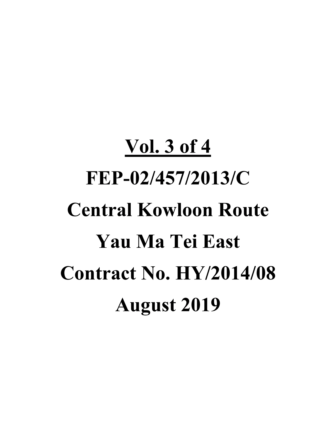 1.2. The Central Kowloon Route – Design and Construction Environmental Impact Assessment Report (Register No.: AEIAR-171/2013) was approved with conditions by the Environmental Protection Department (EPD) on 11 July 2013. An Environmental Permit (EP 457/2013) was issued on 9 August 2013. Variations of EP (VEP) was subsequently applied for and the latest EP (EP-457/2013/C) was issued by EPD on 16 January 2017. A Further EP (FEP-02/457/2013/C) was issued by EPD on 5 March 2018.