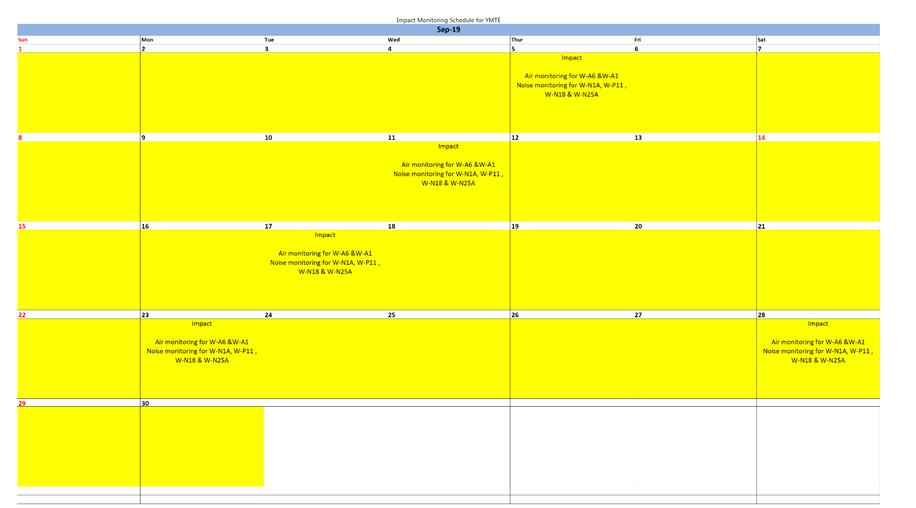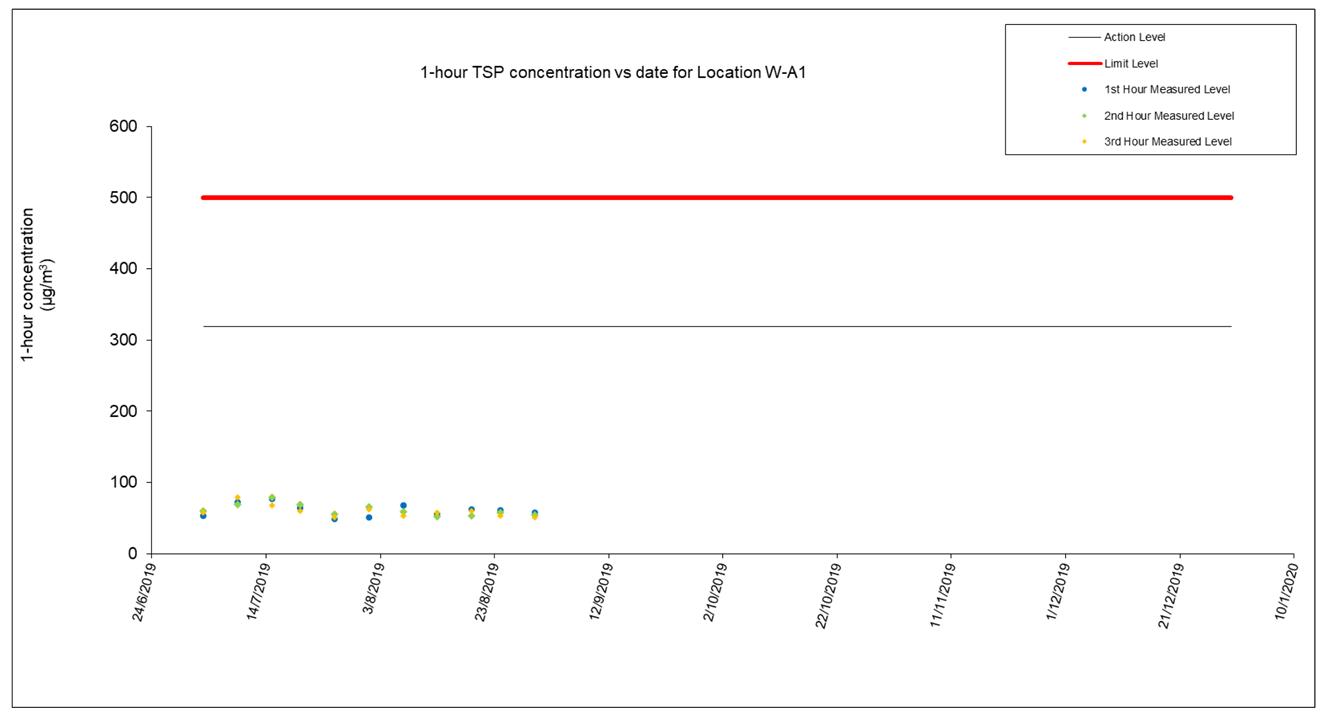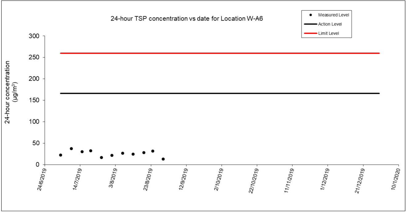 A.10 No exceedance of the Action and Limit Levels of 24-hour TSP and 1-hour TSP monitoring were recorded during the reporting month.
