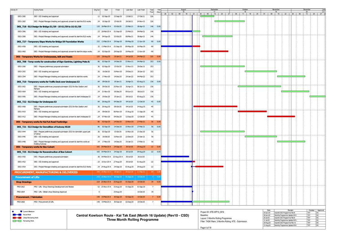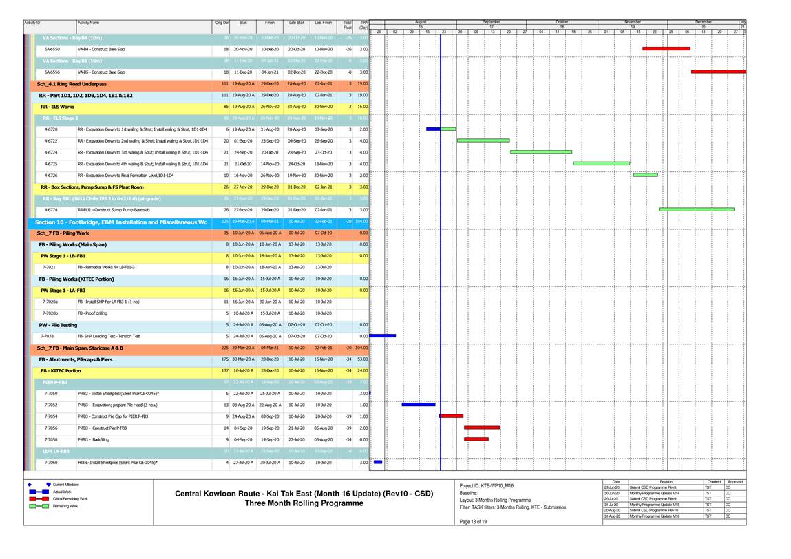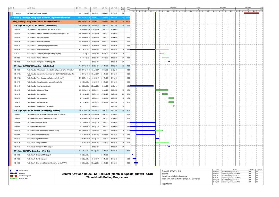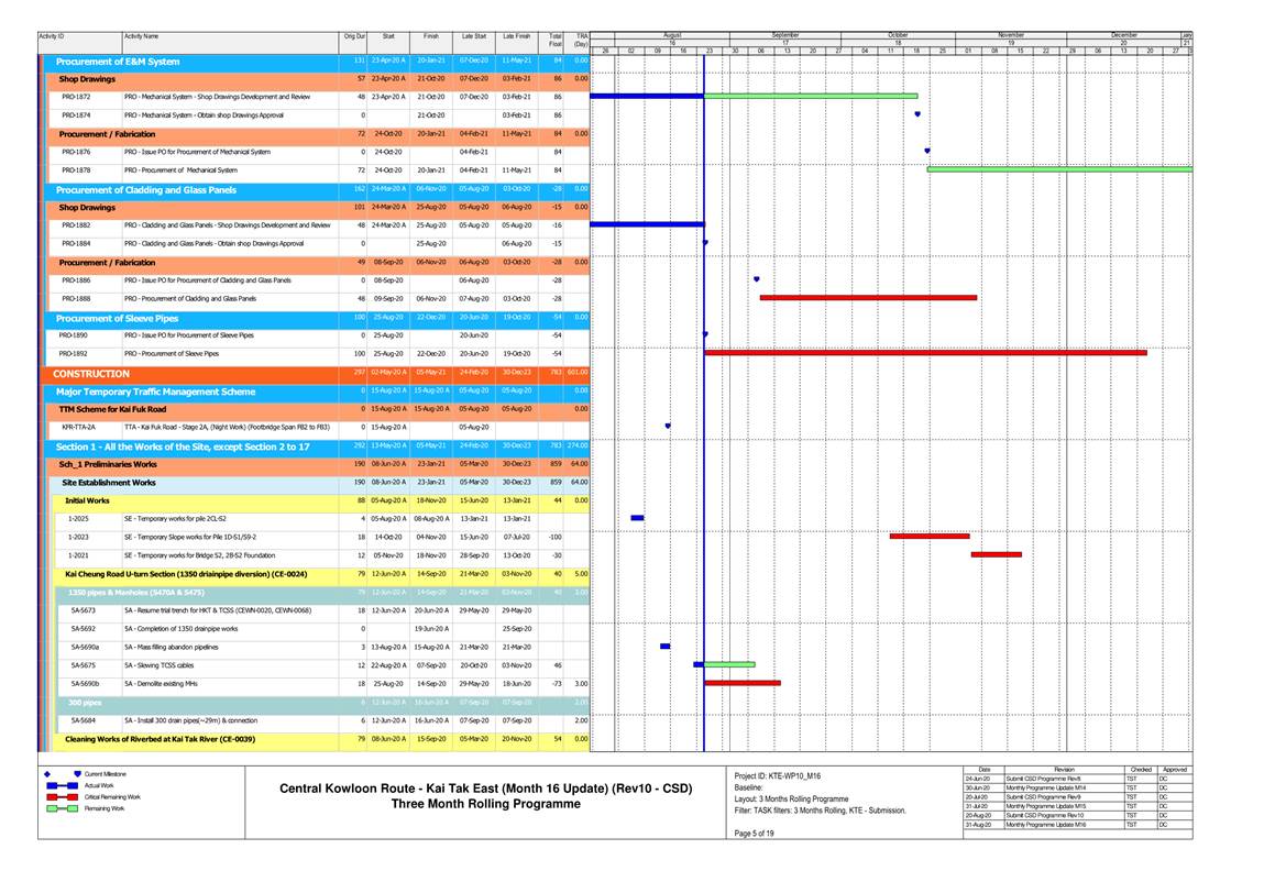 1.4. A summary of major construction activities provided by the Contractor in this reporting period is shown in Table 1.1. The construction programme is presented in Appendix B.