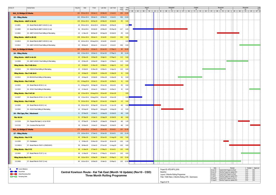 · Bored Pile at Portion 1A, 2B, 3B & Kai Cheung Loop Road. · Foundation Work for the Foot Bridge at Kai Fuk Road. · Sheetpiling Works for Adit at Area 1D3. · Sheetpiling Works for Underpass at Portion 3B. · Construction of Marine Platform at Kai Tak Nallah. · Reconstruction of Box Culvert at Portion 2B. |