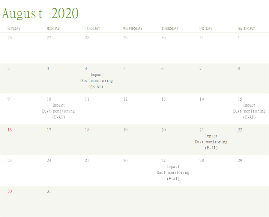 A.5 Bi-weekly inspection of the implementation of landscape and visual mitigation measures by ET was conducted on 4 and 20 August 2020. Details of the audit findings and implementation status are presented in Section 5.