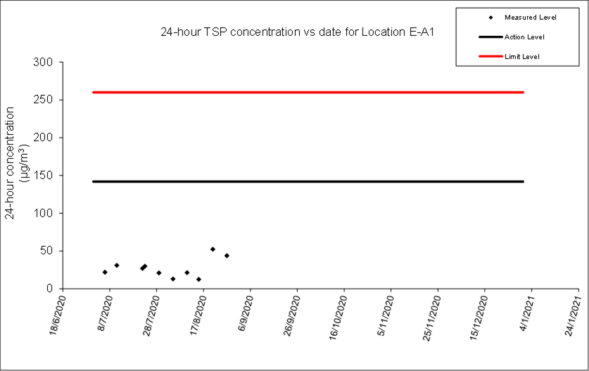 A.7 No exceedance of the Action and Limit Levels of 24-hour TSP and 1-hour TSP monitoring were recorded during the reporting month.