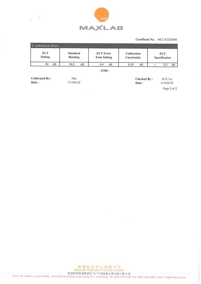 I.       Calibration Certificate (Noise)