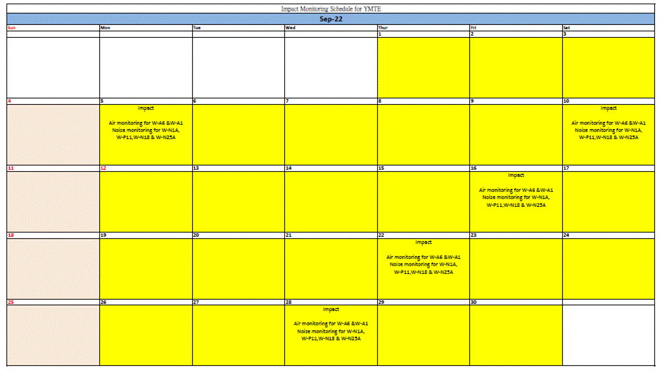 A.3            A summary of regular construction noise and construction dust monitoring activities in this reporting period is listed below:
