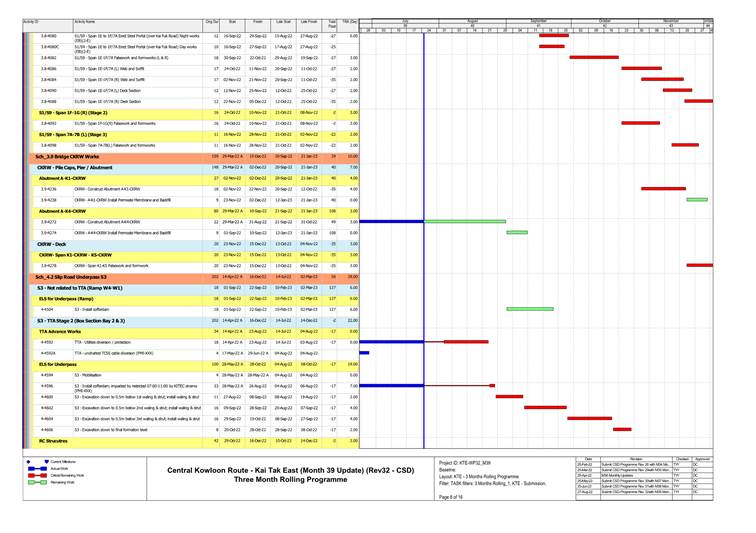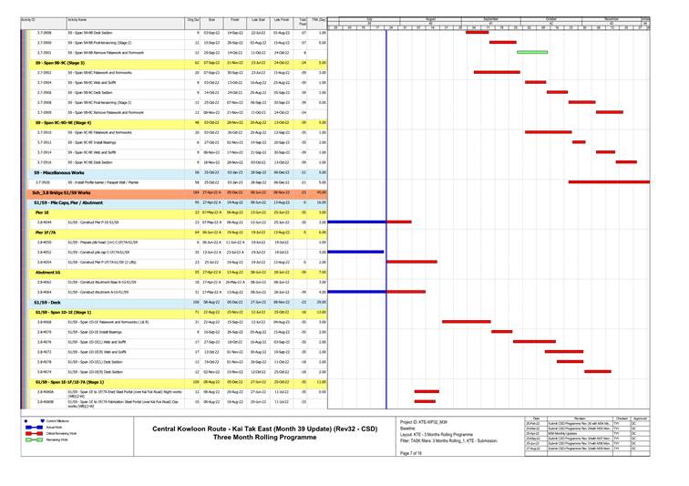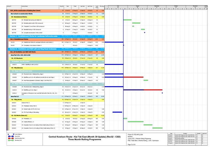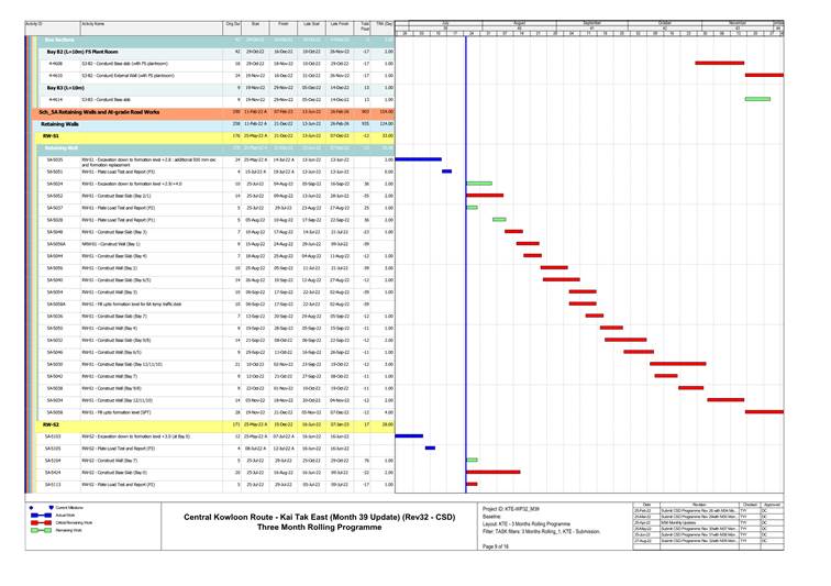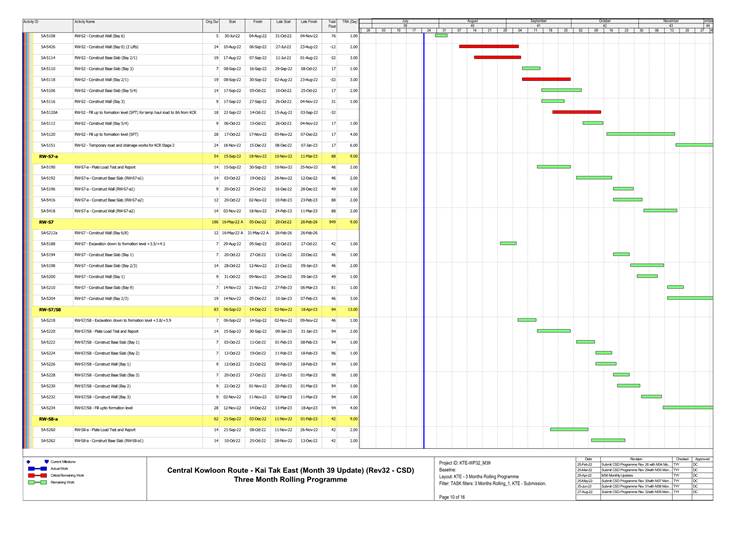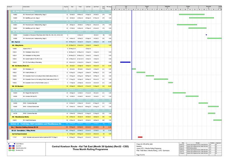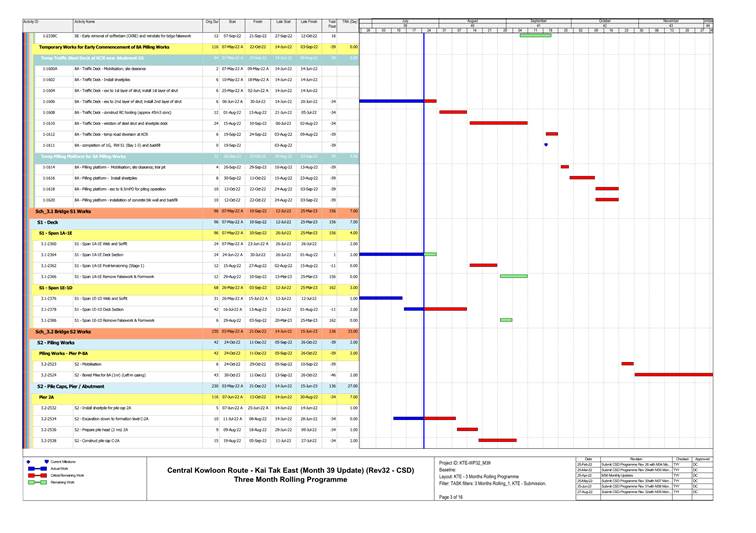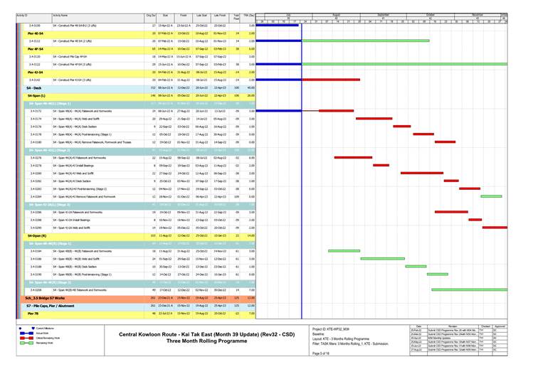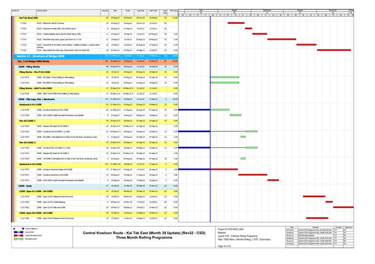 1.5. A summary of major construction activities provided by the Contractor in this reporting period is shown in Table 1.1. The construction programme is presented in Appendix B.