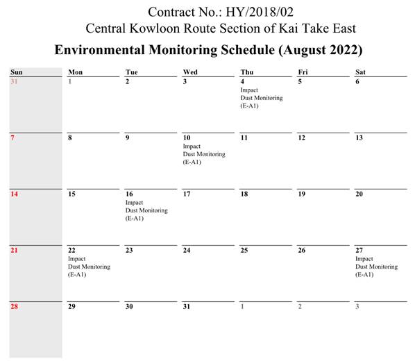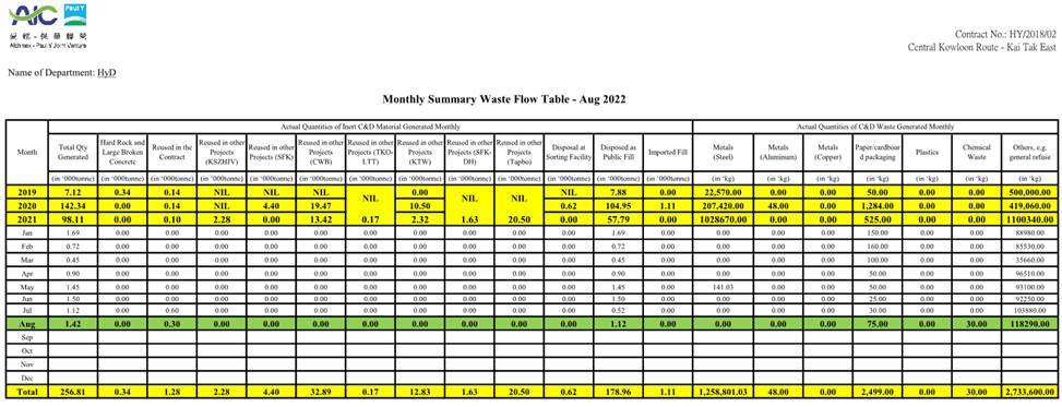 A.1 Alchmex – Paul Y Joint Venture (“Contractor”) commenced the construction works of Highway Department (HyD) Central Kowloon Route Contract No. HY/2018/02 – Section of Kai Tak East (“The Project”) on 9 September 2019. This report is the 36th monthly Environmental Monitoring and Audit (EM&A) report presenting the EM&A works carried out during the period from 1 August 2022 to 31 August 2022.