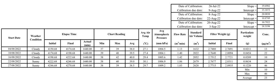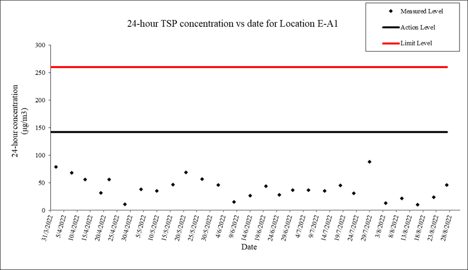 Figure 2: Graphical Illustration of Measured 24-hour TSP (μg/m3) Levels at E-A1