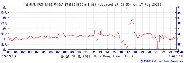 WIND DIRECTION DATA FOR 4, 5, 10, 11, 16, 17, 22, 23, 27 and 28 August 2022