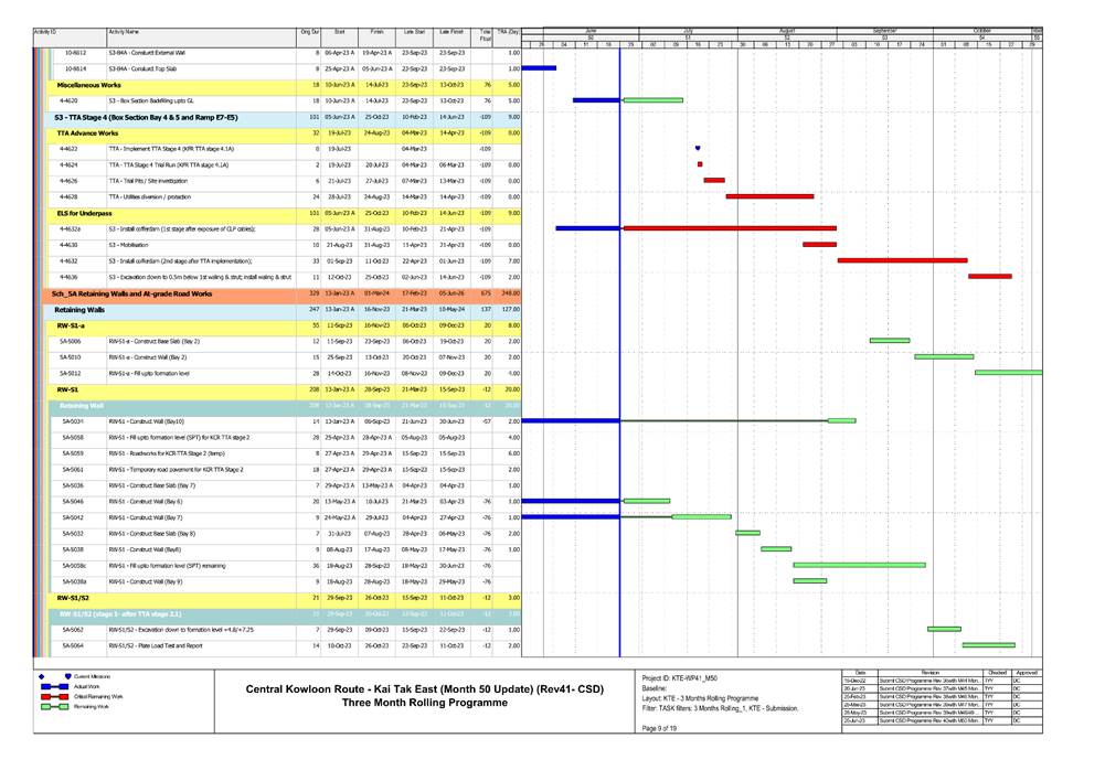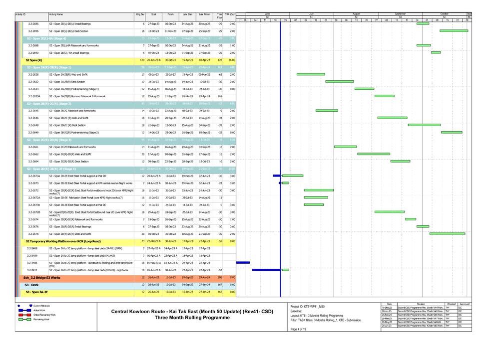 · S1, S3, S4, S9, CKRE, CKRW Bridge Construction · Retaining Wall Construction at U-Turn & Portion 2B · Excavation Work at Portion 4A/4C |