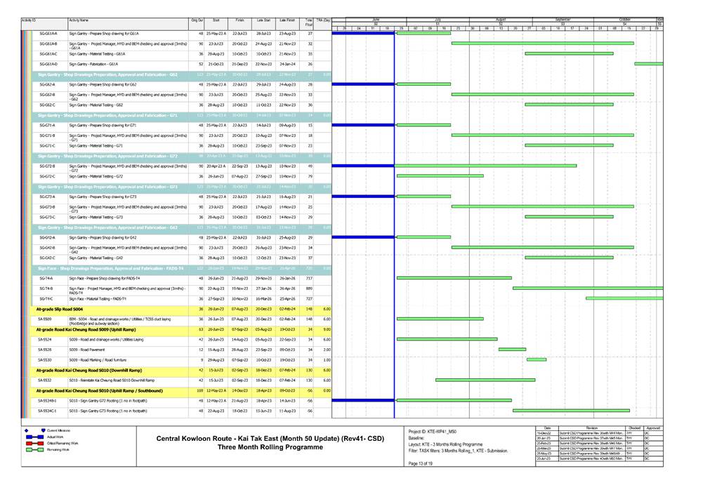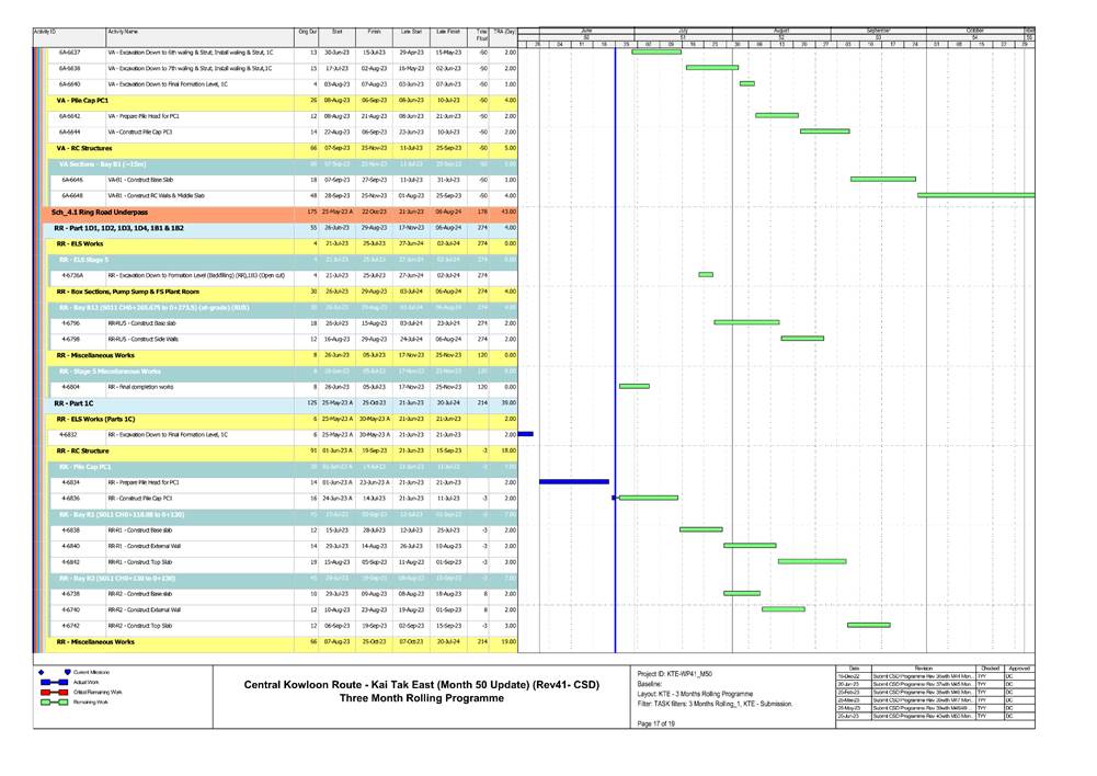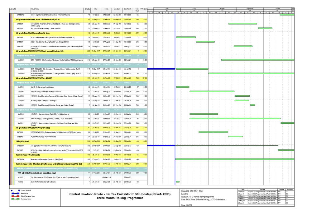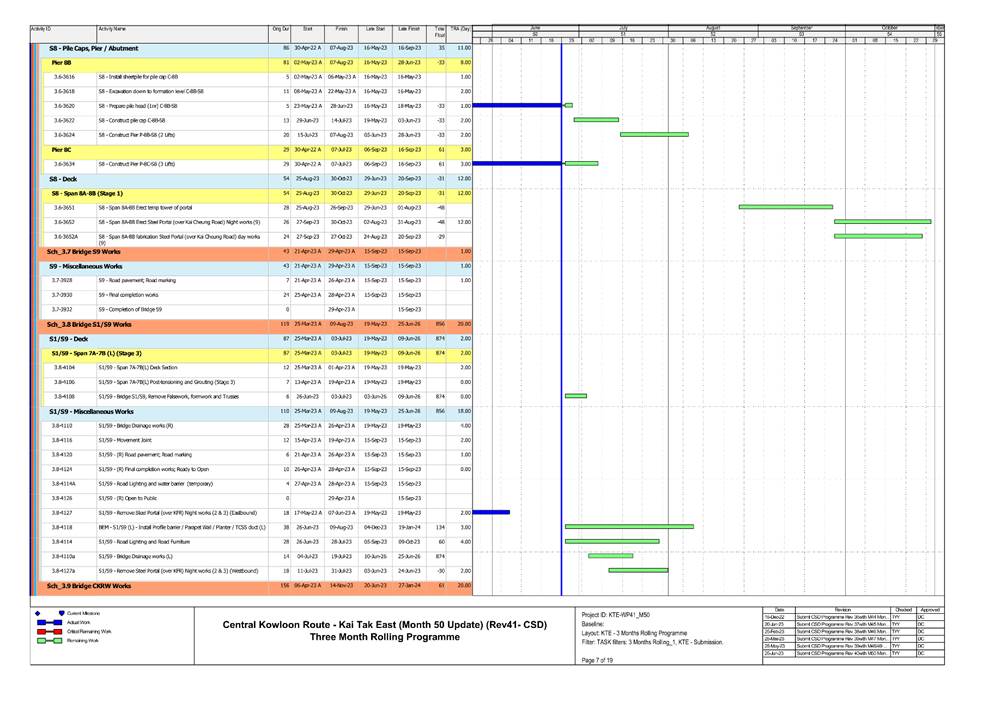 1.5. A summary of major construction activities provided by the Contractor in this reporting period is shown in Table 1.1. The construction programme is presented in Appendix B.
