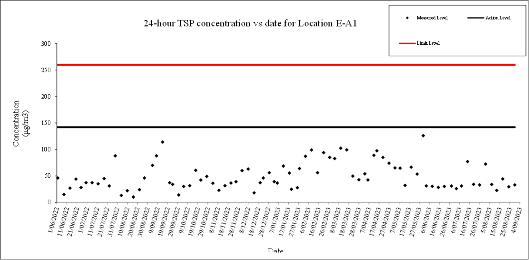 A.7 No exceedance of the Action and Limit Levels of 24-hour TSP and 1-hour TSP monitoring were recorded during the reporting month.