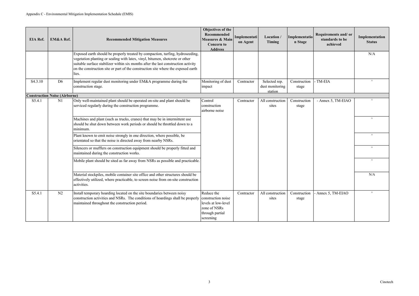 F. Environmental Mitigation Implementation Schedule (EMIS)