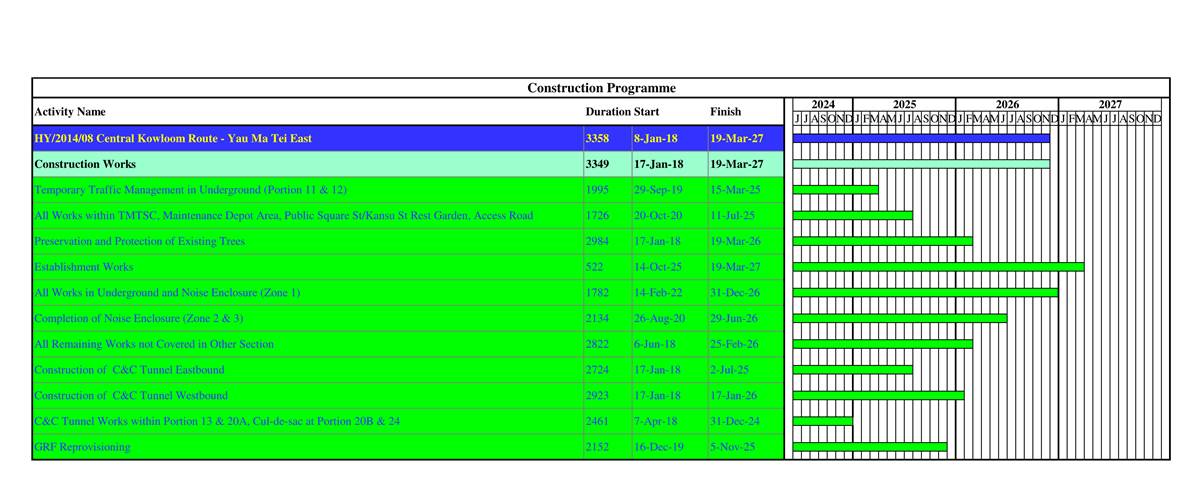 1.3. The construction of the CKR had been divided into different sections. This Contract No. HY/2014/08 – Section of Yau Ma Tei East (YMTE) covers part of the construction activities located at Yau Ma Tei under the EP and FEP which includes: