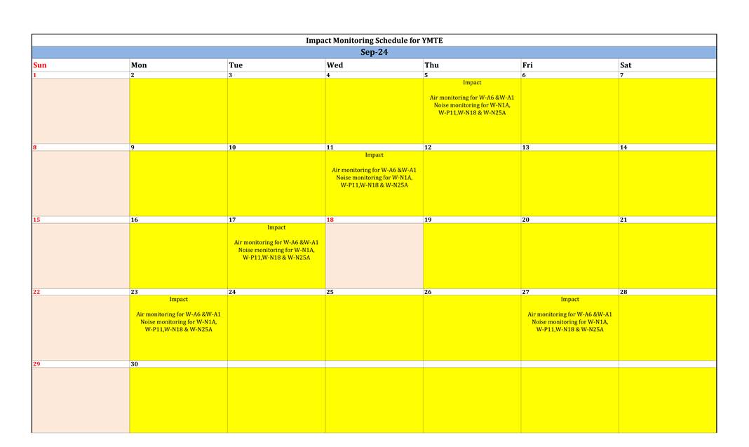 A.7 One Action Level of construction noise was triggered during the reporting month as documented complaints were received. No exceedance of Limit Level of construction noise was recorded in the reporting month. No exceedance of the Action and Limit Level of 24-hour TSP and 1-hour TSP was recorded in the reporting month.