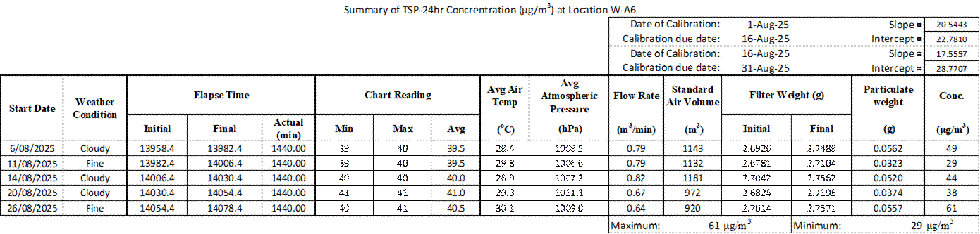 A.4 Bi-weekly inspection of the implementation of landscape and visual mitigation measures was conducted on 14 and 28 August 2025. Details of the audit findings and implementation status are presented in Section 5.