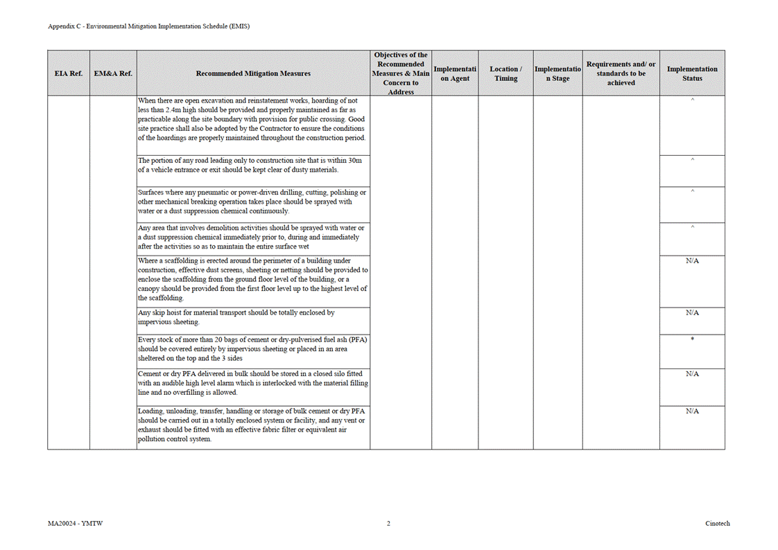 · APCO · To control the dust impact to meet HKAQO and TM-EIA criteria |