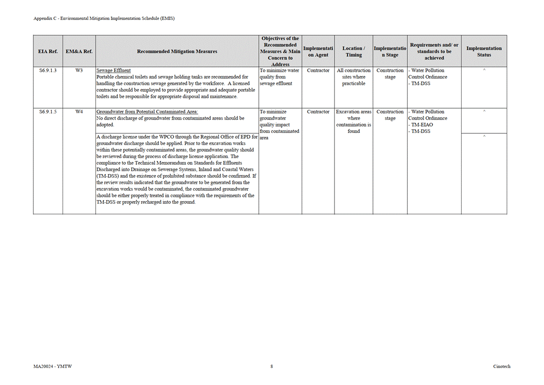 F. Environmental Mitigation Implementation Schedule (EMIS)