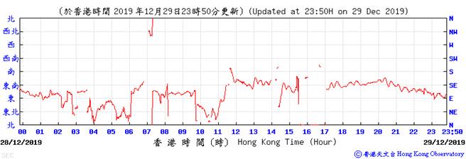 Wind direction data for 5, 6, 11, 12, 17, 18, 23, 24, 28, 29, 31 December 2019