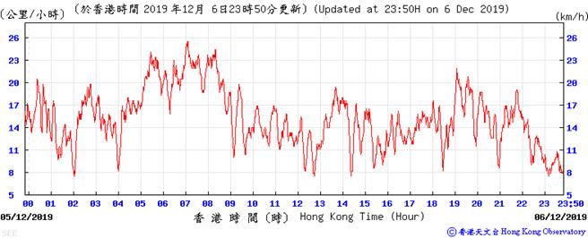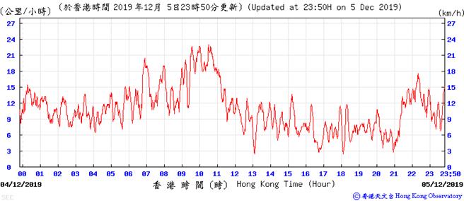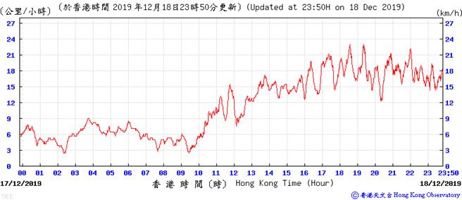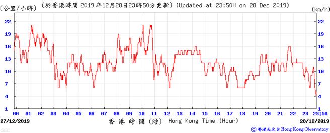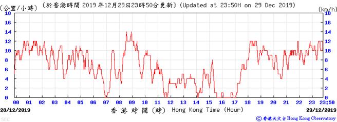 Wind speed data for 5, 6, 11, 12, 17, 18, 23, 24, 28, 29, 31 December 2019