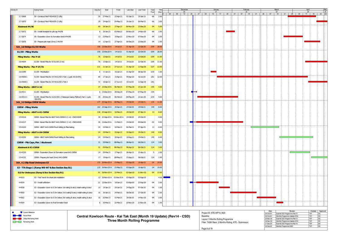 · Bored Pile at Portion 1A, 2B, 3B, Kai Cheung U Turn & Kai Cheung Loop Road. · Construction Work for the Foot Bridge at Kai Fuk Road. · Sheetpiling Works for Adit at Area Part 1B. · Sheetpiling Works for Underpass at Portion 3B. · Construction of Marine Platform at Kai Tak Nallah · Reconstruction of Box Culvert at Portion 2B · Sheetpiling Work at Area Part 1A. |