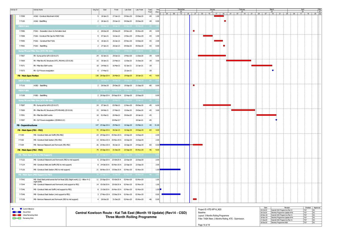 1.4. A summary of major construction activities provided by the Contractor in this reporting period is shown in Table 1.1. The construction programme is presented in Appendix B.