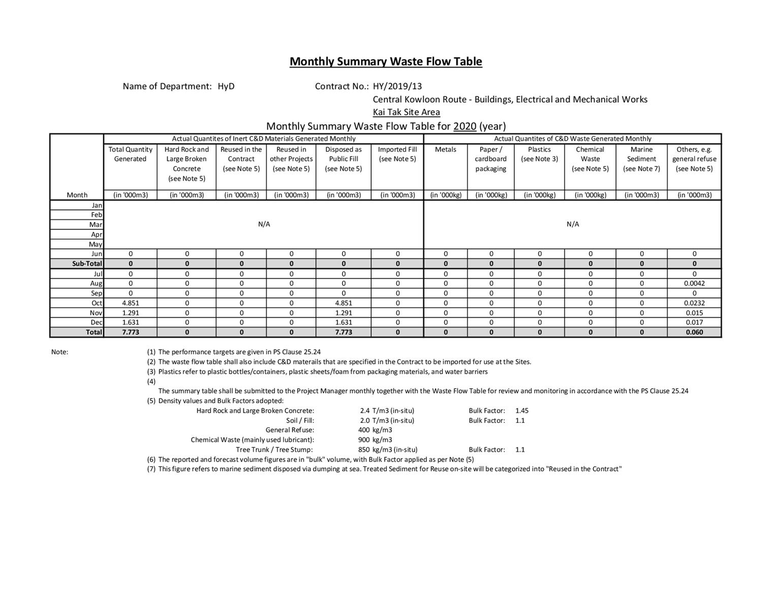 4.3 Site audits were carried out on a weekly basis to monitor and audit to ensure that proper storage, transportation and disposal practices of waste materials generated during construction activities, such as construction and demolition (C&D) materials and general refuse are being implemented. The summary of site audits are shown in Table 6.1 of this report. The implementation status of the waste/chemical management measures in the reporting period are summarized in Appendix C.