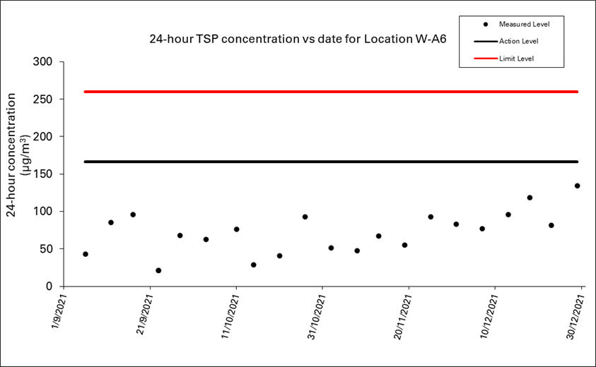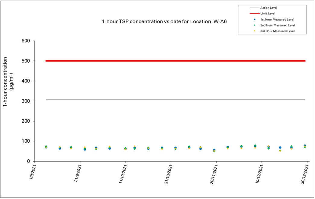 A.7          No exceedance of the Action and Limit Levels of 1-hour TSP, 24-hour TSP and construction noise monitoring was recorded during the reporting month.