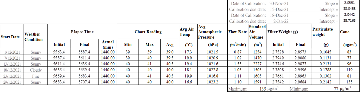 A.5          Joint weekly site inspections were conducted by representatives of the Contractor, Engineer and Contractor’s ET on 2, 9, 16, 23 and 30 December 2021. One joint site inspection with IEC also undertaken on 16 December 2021. Details of the audit findings and implementation status are presented in Section 5.