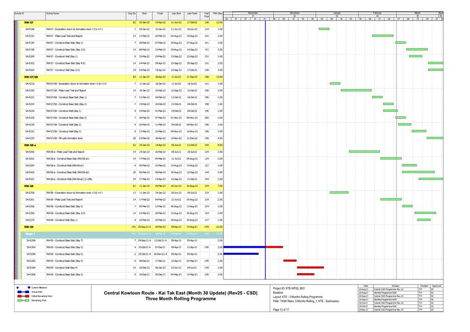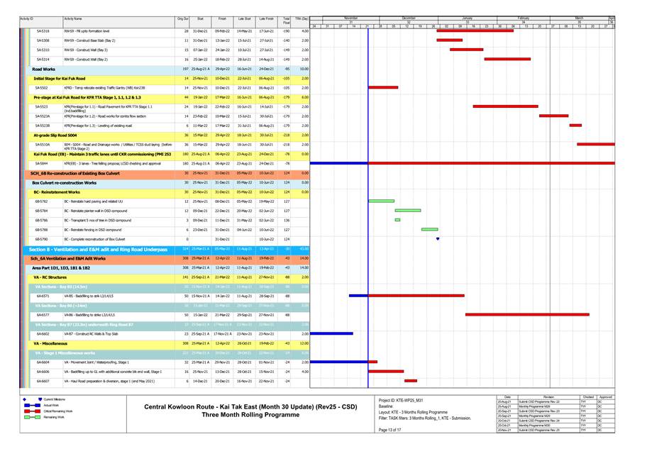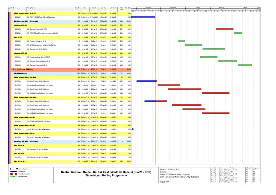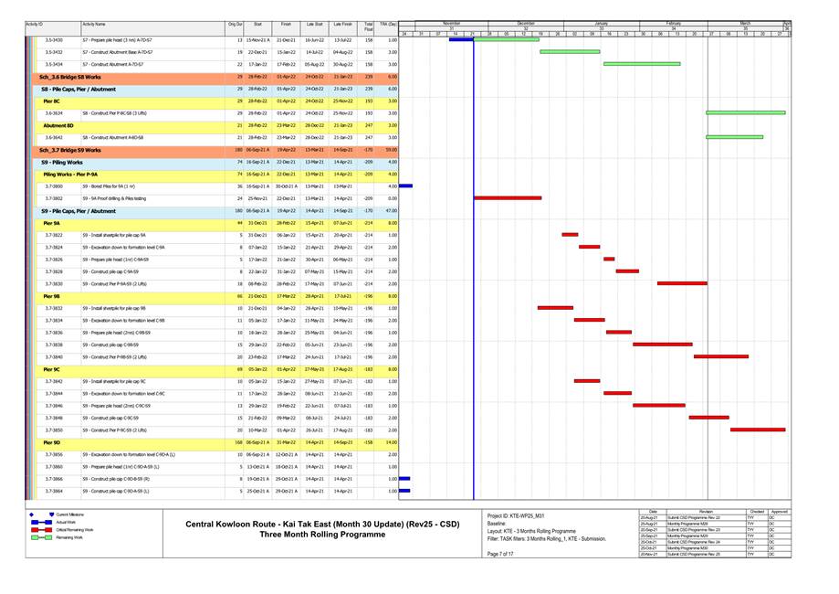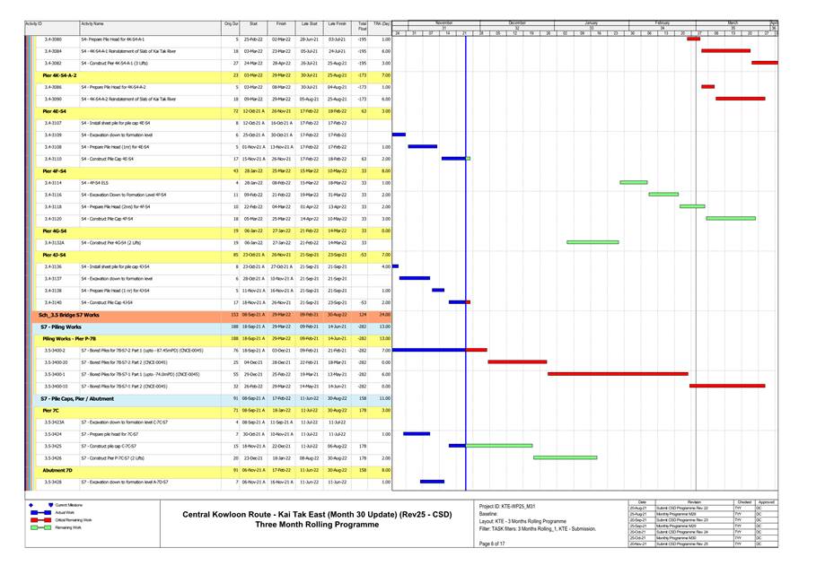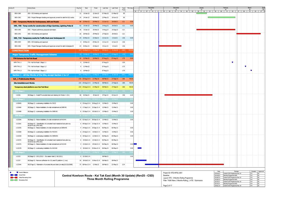 1.4. A summary of major construction activities provided by the Contractor in this reporting period is shown in Table 1.1. The construction programme is presented in Appendix B.