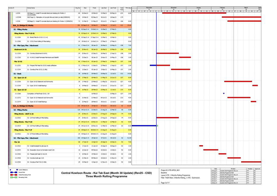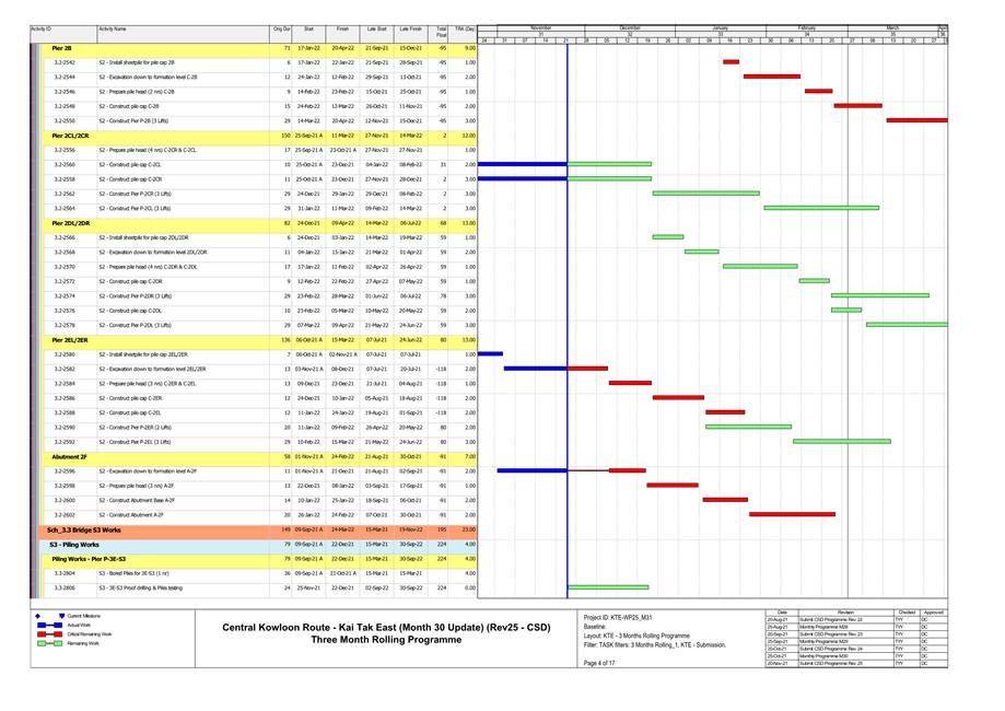 · Bored Pile at Temporary Platform& Kai Cheung U Turn. · Pile Cap Construction at Portion 1A, Kai Cheung Loop Road & Portion 2B. · RC structure for Adit at Area Part 1B. · RC structure for Underpass S3 & S21 at Portion 3B. · Construction of Temporary Platform at Kai Tak Nallah. · Retaining Wall Construction at U-Turn & Portion 2B. · Sheetpiling Work at U-Turn. · Central Divider Removal at Kai Fuk Road. |