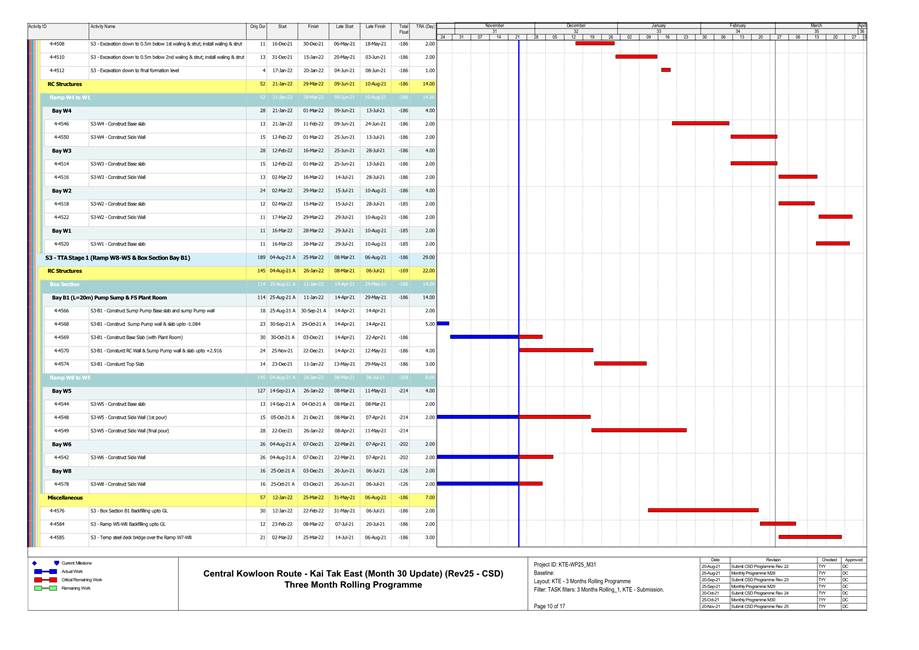 A.10 A summary of Construction Activities provided by Contractor in next reporting month is listed below: