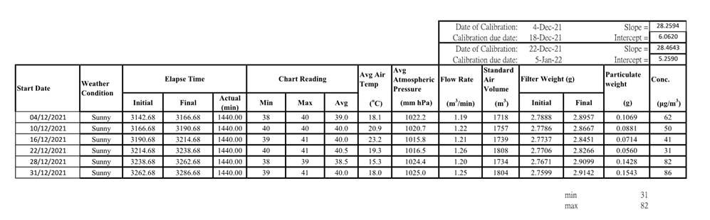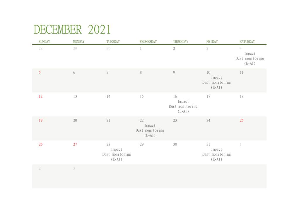 2.2 No Action/Limit Level exceedance was recorded for all 1-hour TSP and 24-hour TSP monitoring in the reporting month.