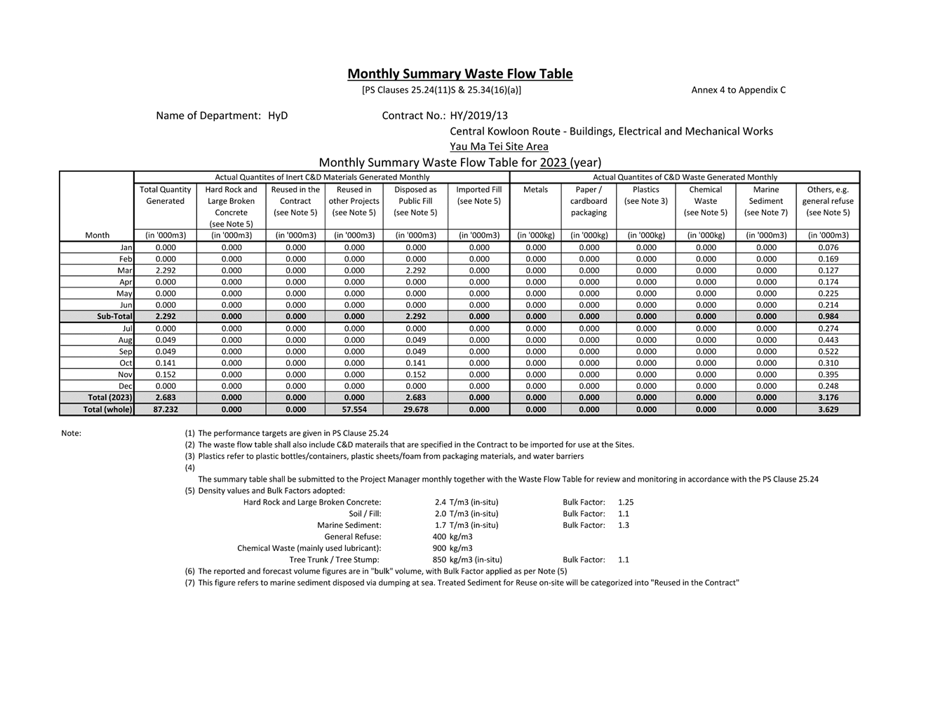 3. Environmental monitoring for the Project was performed in accordance with the EM&A Manual and the monitoring results were checked and reviewed. Joint weekly site inspections with the representative of ET, Engineer Representative and the Contractor for Contract No. HY/2019/13 were conducted on 5, 13, 19, 27 December 2023, whereas joint site inspection with the representative of IEC was conducted on 13 December 2023. The implementation of the environmental mitigation measures, Event and Action Plans and environmental complaint handling procedures were also checked.
