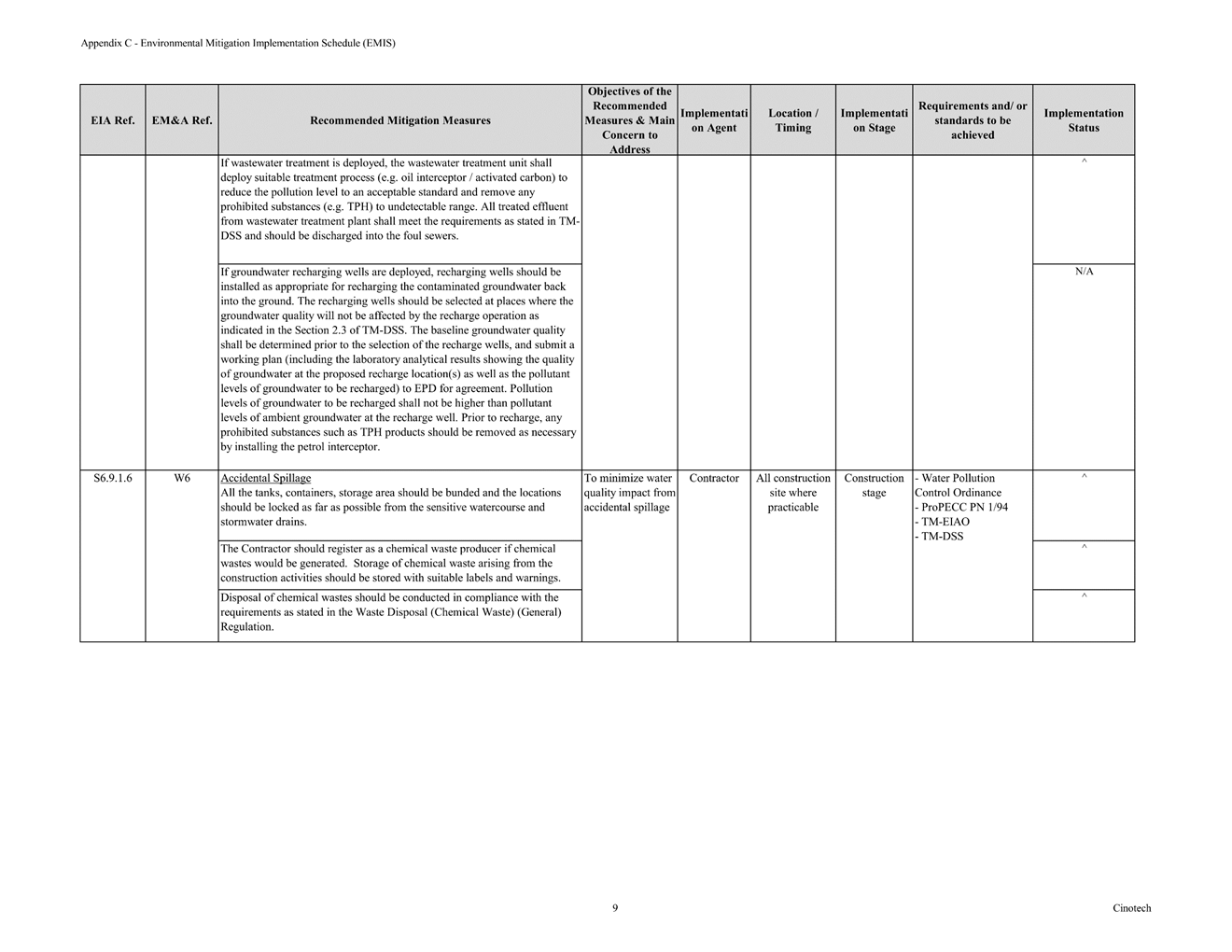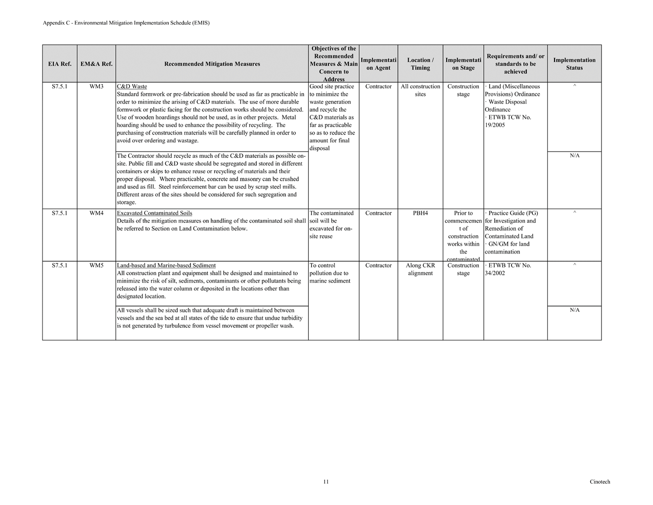 Appendix C Environmental Mitigation Implementation Schedule (EMIS)