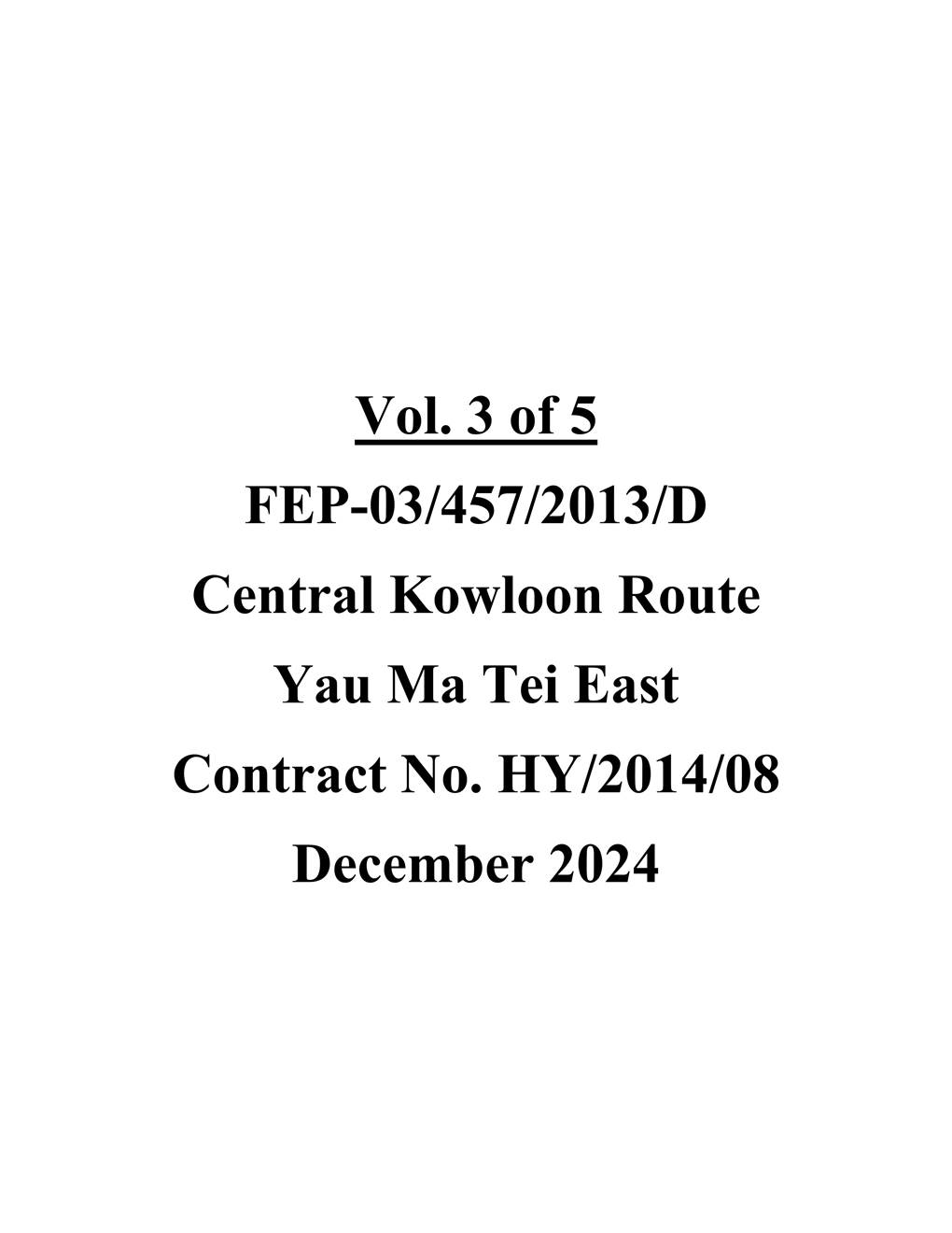 1.2. The Central Kowloon Route – Design and Construction Environmental Impact Assessment Report (Register No.: AEIAR-171/2013) was approved with conditions by the Environmental Protection Department (EPD) on 11 July 2013. An Environmental Permit (EP 457/2013) was issued on 9 August 2013. Variations of EP (VEP) was applied for and the EP (EP-457/2013/C) was issued by EPD on 16 January 2017. Variations of EP (VEP) was subsequently applied for and the latest EP (EP-457/2013/D) was issued by EPD on 15 June 2021. A Further EP (FEP-03/457/2013/D) was issued by EPD on 5 November 2021.