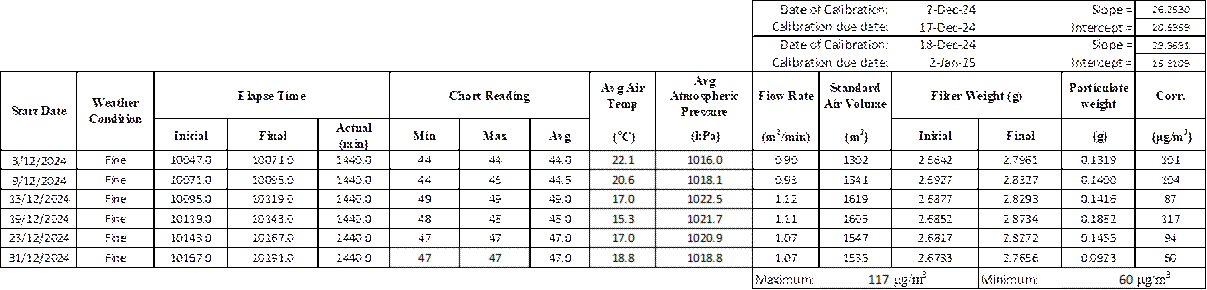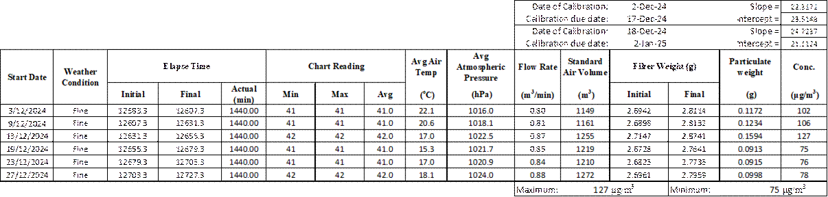 A.5 Joint weekly site inspections were conducted by representatives of the Environmental Team (ET), Contractor and Engineer on 5, 11, 19 and 24 December 2024. One joint site inspection with IEC was also undertaken on 11 December 2024. Details of the audit findings and implementation status are presented in Section 5.