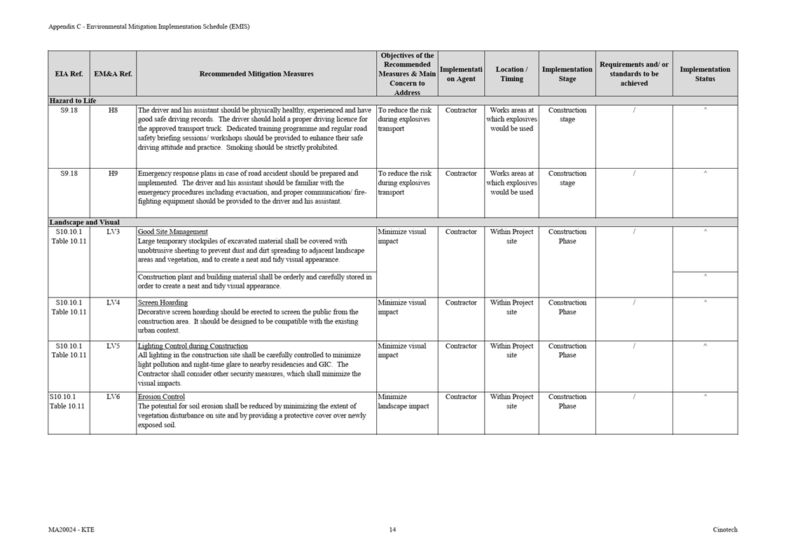 Appendix C Environmental Mitigation Implementation Schedule (EMIS)