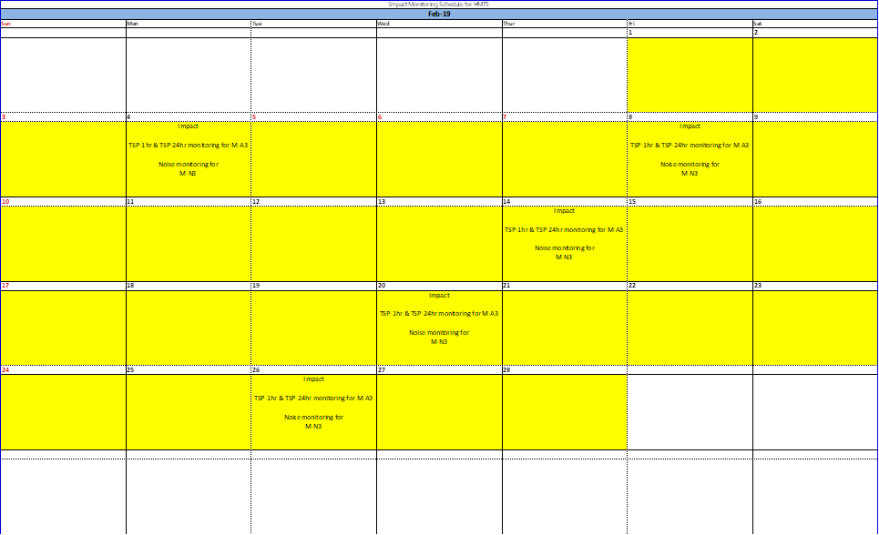 A.7 Joint weekly site inspections were conducted by representatives of the Contractor, Engineer and Contractor’s ET on 4, 12, 19, 26 February 2019. The representative of IEC joined the site inspection on 12 February 2019. Details of the audit findings and implementation status are presented in Section 5.