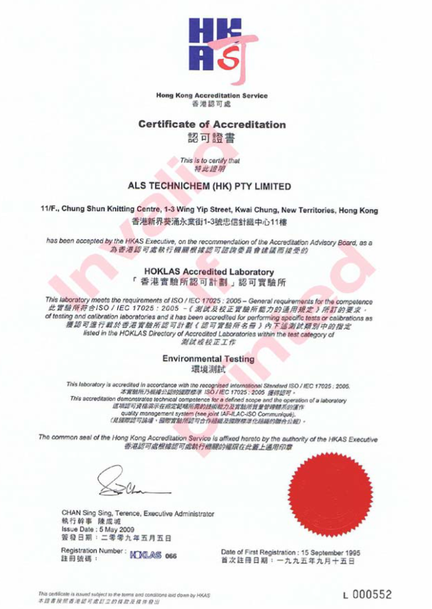 J. The Certification of Laboratory with HOKLAS Accredited Analytical Tests