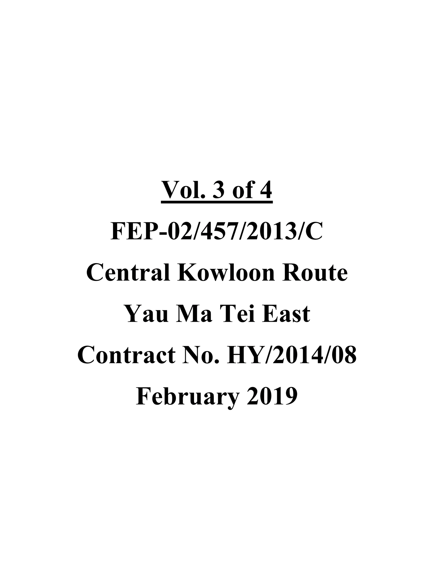1.2. The Central Kowloon Route – Design and Construction Environmental Impact Assessment Report (Register No.: AEIAR-171/2013) was approved with conditions by the Environmental Protection Department (EPD) on 11 July 2013. An Environmental Permit (EP 457/2013) was issued on 9 August 2013. Variations of EP (VEP) was subsequently applied for and the latest EP (EP-457/2013/C) was issued by EPD on 16 January 2017. A Further EP (FEP-02/457/2013/C) was issued by EPD on 5 March 2018.