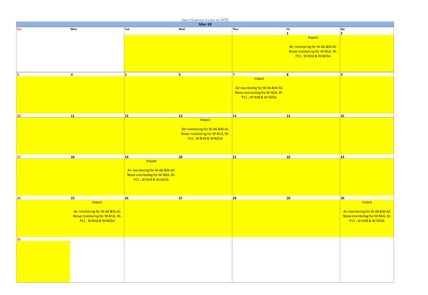 A.10 No exceedance of the Action and Limit Levels of 24-hour TSP and 1-hour TSP monitoring were recorded during the reporting period.